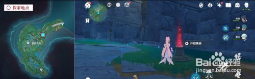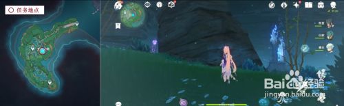 图示摸索地址,山岩上的瀑布,有一个被水史莱姆守护的通俗箱子;