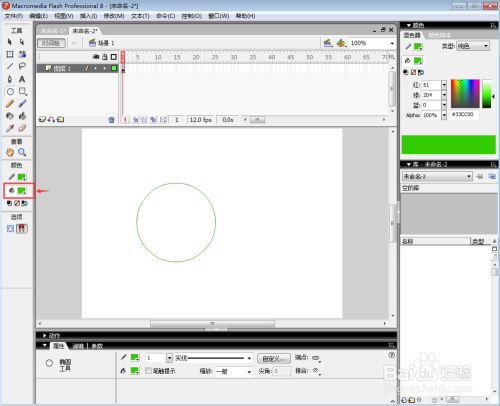 按住键盘上的shift键不放,在舞台上拖动鼠标左键,就可以绘制出一个尺度的圆形;