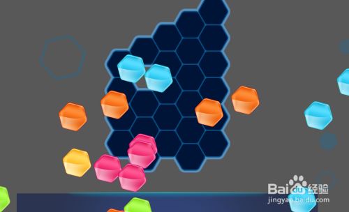 最后在黄色六边形拼块的右侧,放上紫色六边形拼块挨着,如图,这样就顺遂通关了。