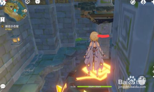 接着往右边走到这个位置,和我站在同样的角度,这个稍微有些难度,不外和我一样瞄准就可以很轻松的爬上去。