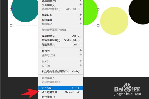 然后在菜单的下拉选项中选择归并组。归并后的各个图层会保留原有的颜色信息。