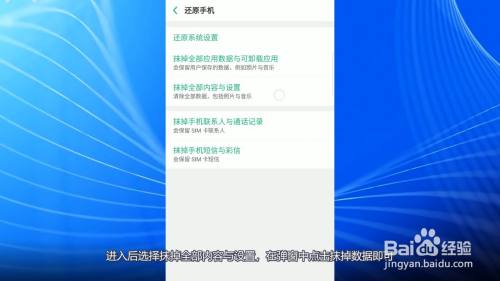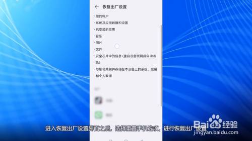 进入恢复出厂设置界面之后,选择重置手机选项,进行恢复出厂设置。