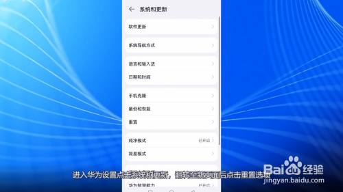 进入华为设置点击系统和更新,翻转至新页面后点击重置选项。