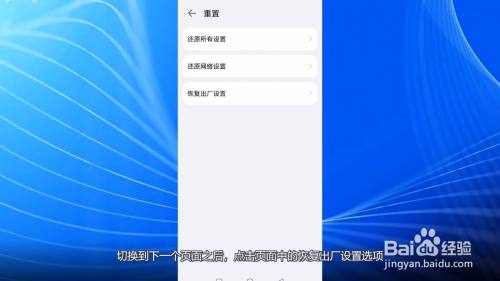 切换到下一个页面之后,点击页面中的恢复出厂设置选项。