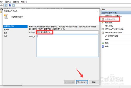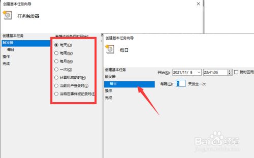 接下来按图示进行操作,首先,我们输入历程的名称,点击下一步按钮之后,输入使命执行的时候的时候。