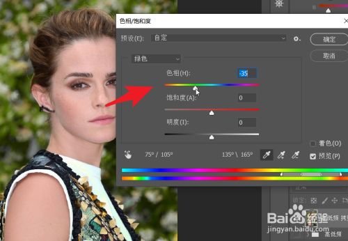 在色相一贯的后面直接输入数值或者拖动滑块更改颜色。