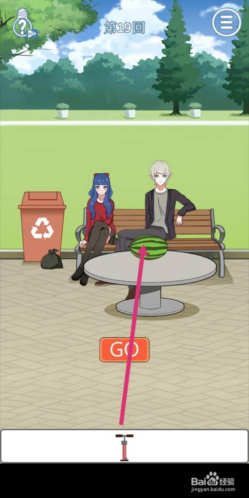 利用【打气筒】给桌上的西瓜打气,西瓜就会兴起来。