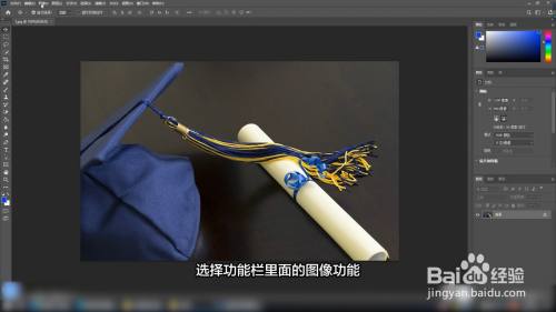 进入ps软件界面,找到界面上方的功能栏,选择功能栏里面的图像功能。