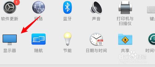 打开系统偏好设置,点击显示器。