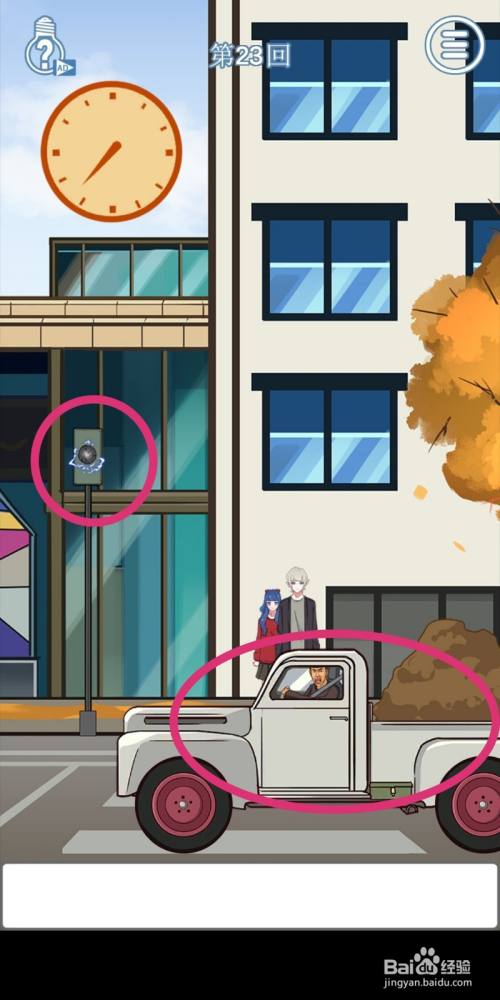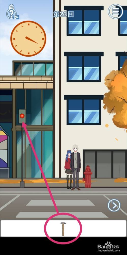 回到左侧场景,拖动【锤子】砸坏路口的红绿灯。