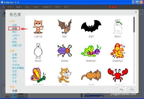 按照本身的需要,找到想插入脚色的类别,譬如选择动物类别;