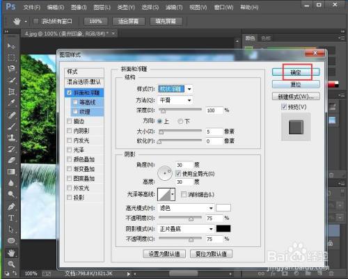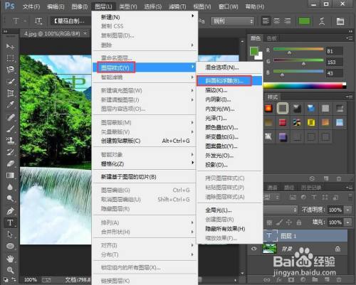 点击图层,选择图层样式下的斜面和浮雕;