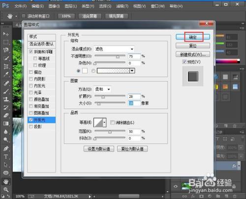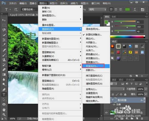 点击图层,选择图层样式下的外发光;