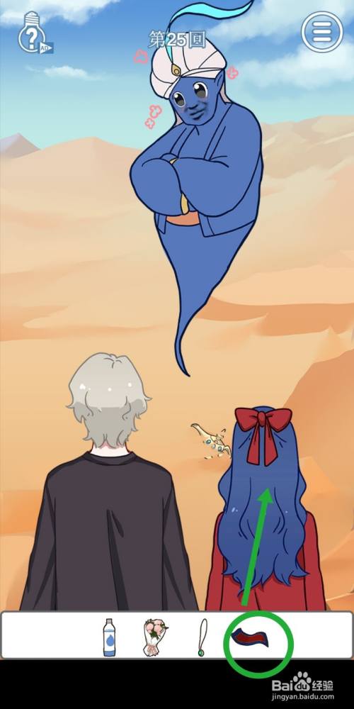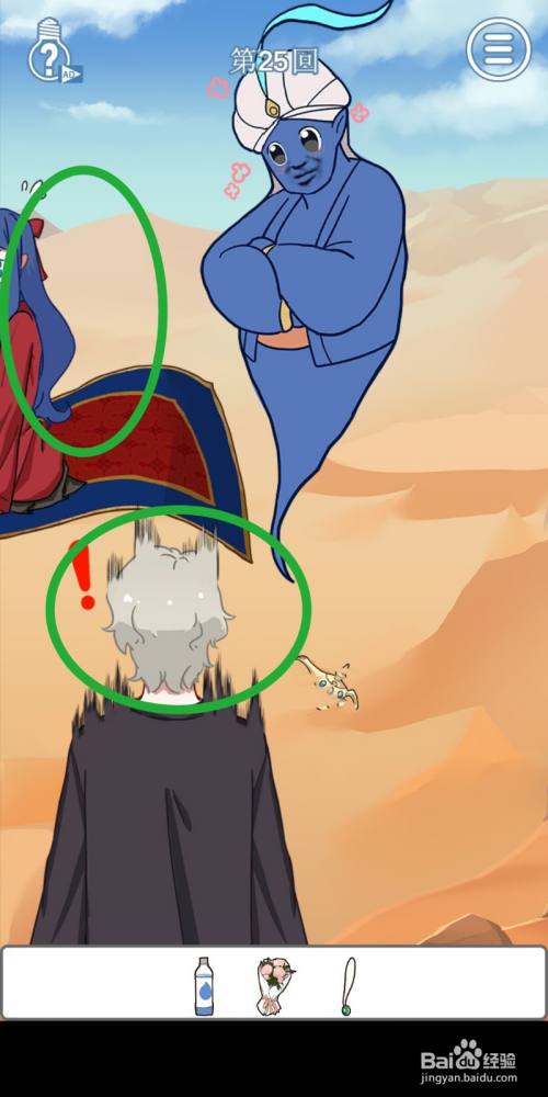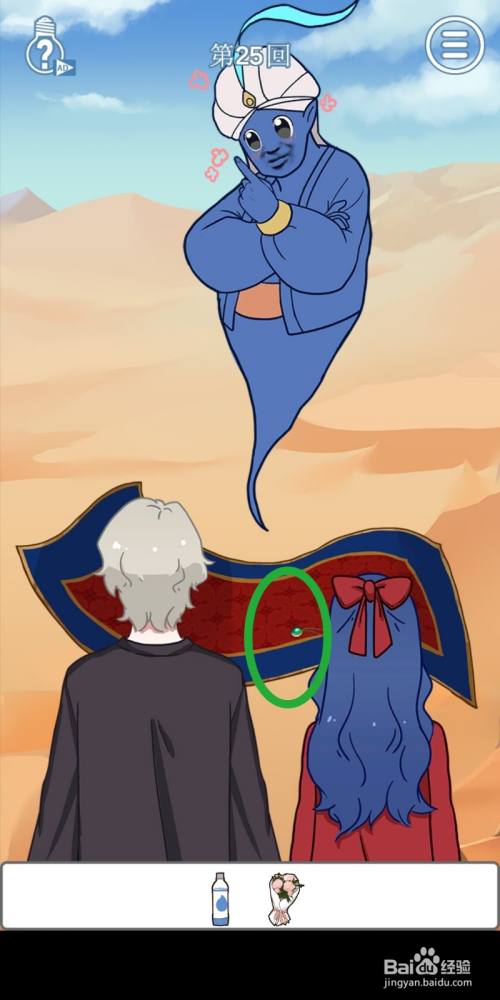 点击拖动【金币】给瓶神,他就会许可再从飞毯上拿走一件物品。