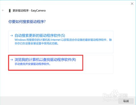 选择“浏览我的计较机以查找驱动程序软件”进入。
