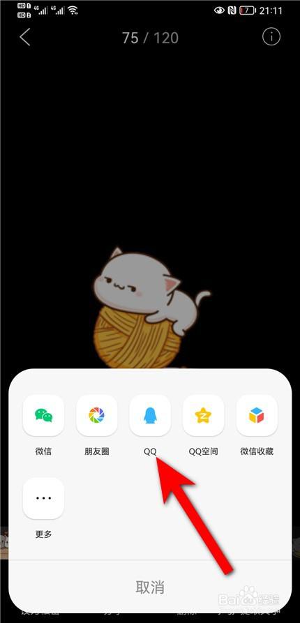 页面弹出选项,点击QQ,就可以把脸色导入到QQ了。