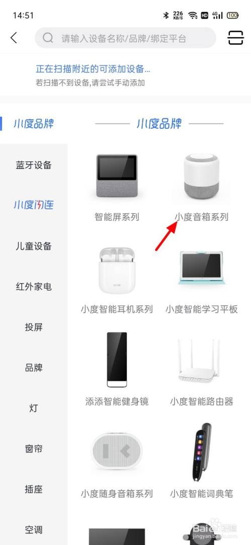 在添加页面,点击小度音响系列,