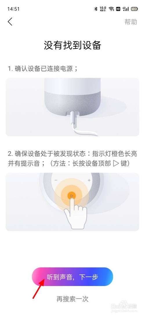 在毗连页面,点击听到声音,下一步。