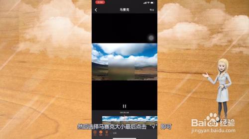 呈现马赛克,然后选择马赛克大小最后点击“√”即可。