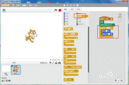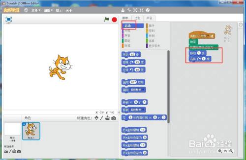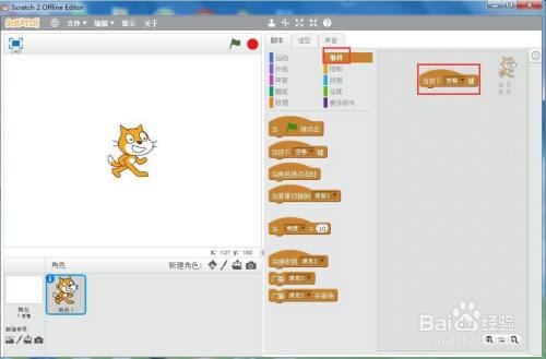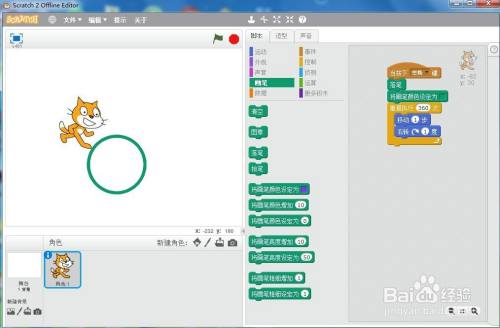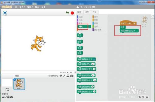 点击画笔,添加落笔、将画笔颜色设定为绿色号令;