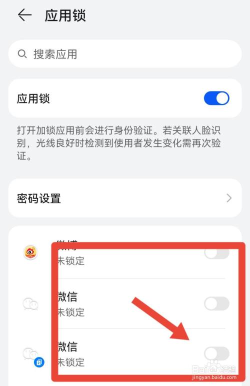 输入锁屏密码进入应用锁,找到并开启微信兼顾的应用锁即可。
