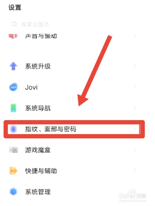 打开手机设置,在设置页面进入指纹、面部和密码。