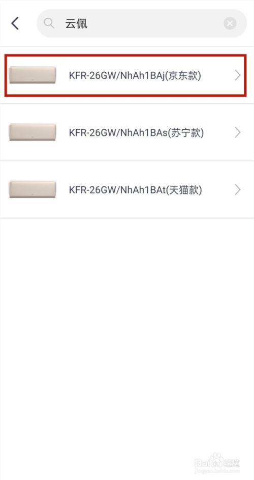 3、搜索框输入本身的格力空调名称后,选择对应空调类型。