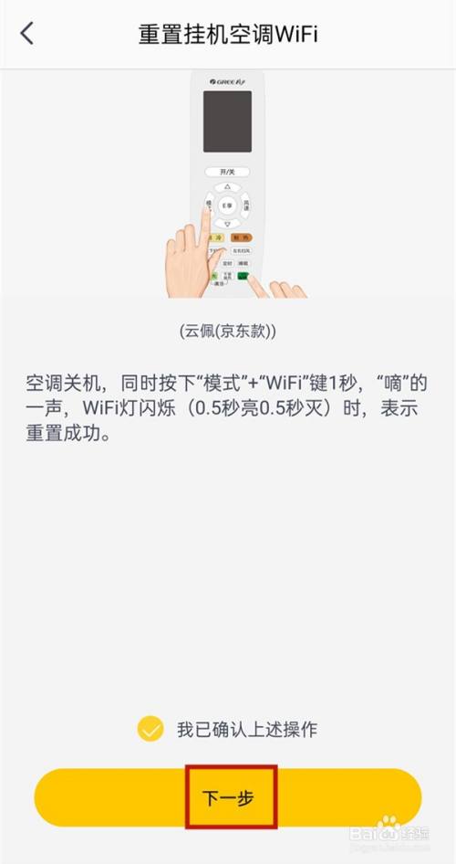 4、按提醒重置挂机空调WiFi,完当作后点击下一步。