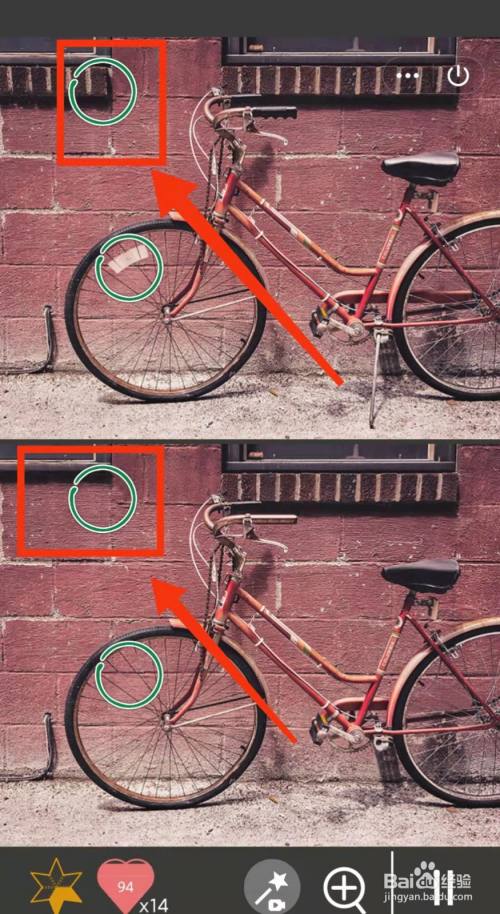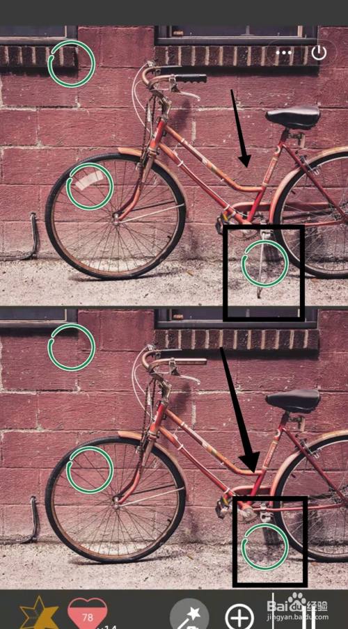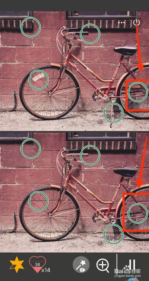 工具/原料小米手机Redmi k30MIUI12.5.3找分歧1500关2方式/步骤1上面的车轮有白色标记,下面没有2上面窗户下有砖,下面没有3上面的车有支架,下面没有4上面的车有后盘,下面没有5上面的车把有黑色的,下面没有6上面的车座有亮光,下面没有END