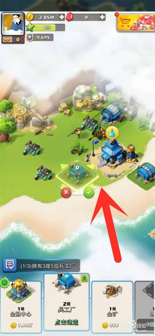 工具/原料一加6TAndroid10口袋奇兵1.248方式/步骤1我们打开手机,点击口袋奇兵进入。2在口袋奇兵的界面,我们点击下方的建造。3我们在建造的选项里面,找到兵厂,点击兵厂。4我们在新建的兵厂这里,移动想建造的位置。5移动好之后,我们点击对号。6点击对号今后,我们即可建造好了兵厂。END