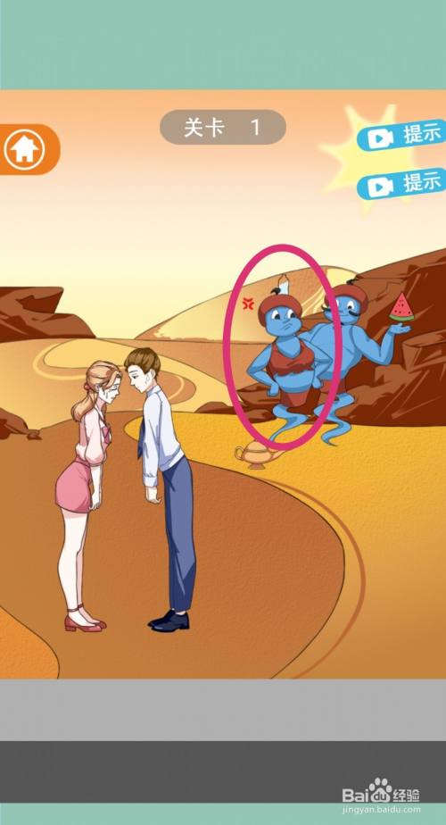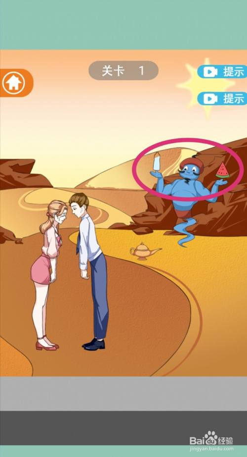 不要点击水瓶和西瓜,再次点击【神灯】,就可以呼唤出女灯神。