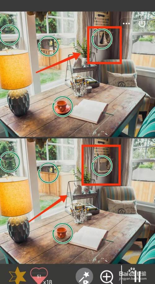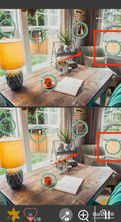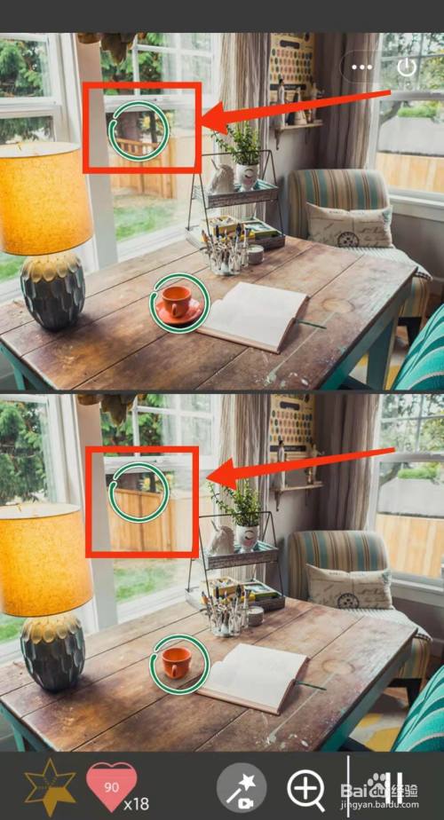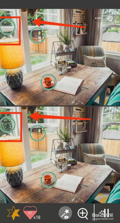 工具/原料小米手机Redmi k30MIUI12.5.3找分歧1500关2方式/步骤1上面的杯子有盘子,下面没有2上面的围栏上有空地,下面没有3上面的窗户上有白色的横线,下面没有4上面有两个杯子,下面只有一个5上面窗户中的木栏低,下面窗户的木兰高6上面的桌子有桌角,下面没有END