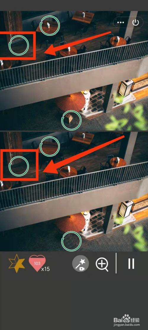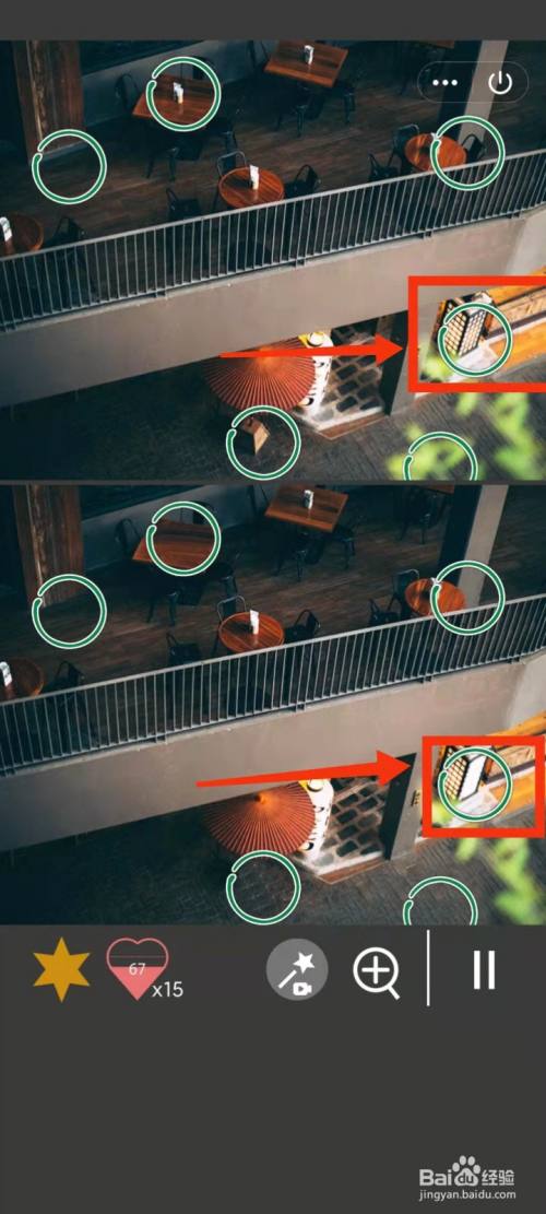 工具/原料小米手机Redmi k30MIUI12.5.3找分歧1500关2方式/步骤1上面有凳子,下面没有2上面桌子上有白色杯子,下面没有3上面墙下有黑色的边,下面没有4上面有两处植物,下面只有一处5上面椅子有三把,下面只有两把6上面灯两面都有斑纹,下面只有一面END