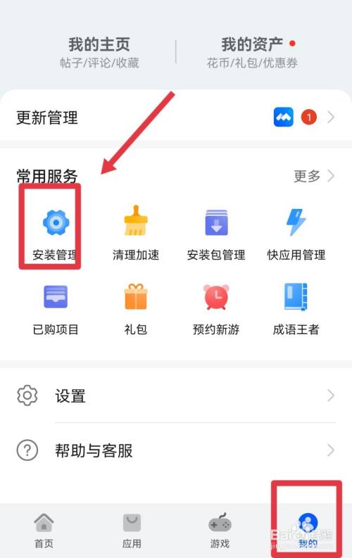 打开应用市场,点击我的,在我的页面点击进入安装办理。