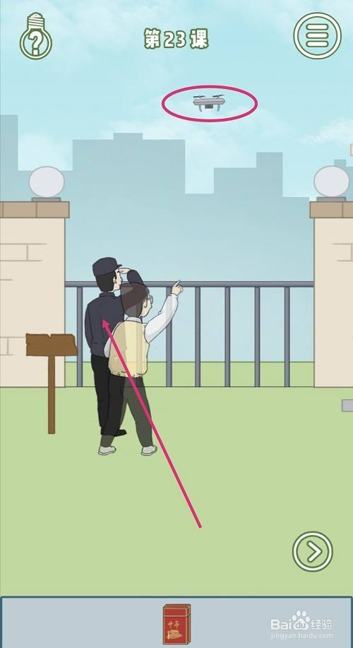 把【遥控手柄】给教员,让他去操控无人机,等无人机飞到上空,点击保安。