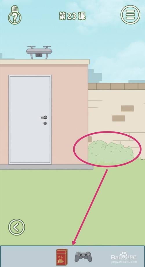 进入右侧场景,点击两次草丛,可以获得一盒【中华】和一个【遥控手柄】。