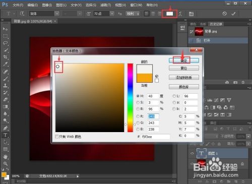 在面板中点击颜色,选中需要的颜色后按确定;