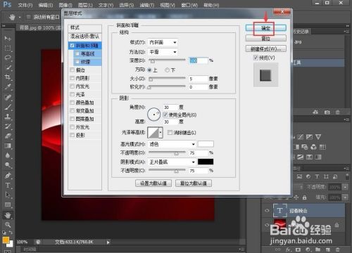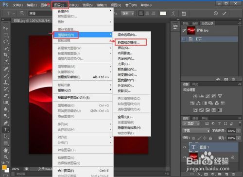 点击图层,选择图层样式,选择斜面和浮雕;