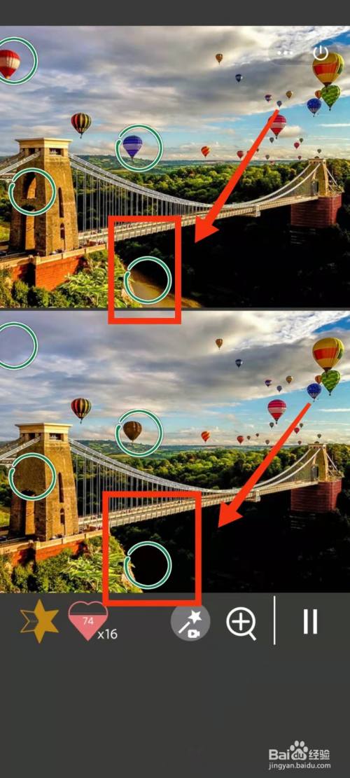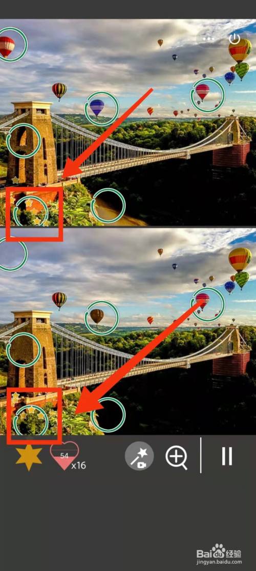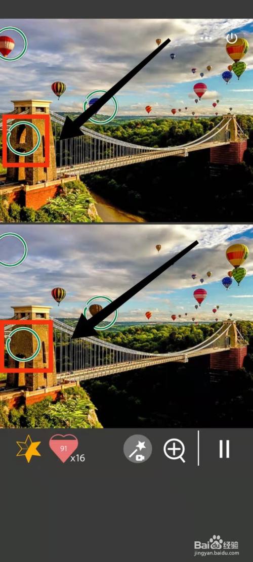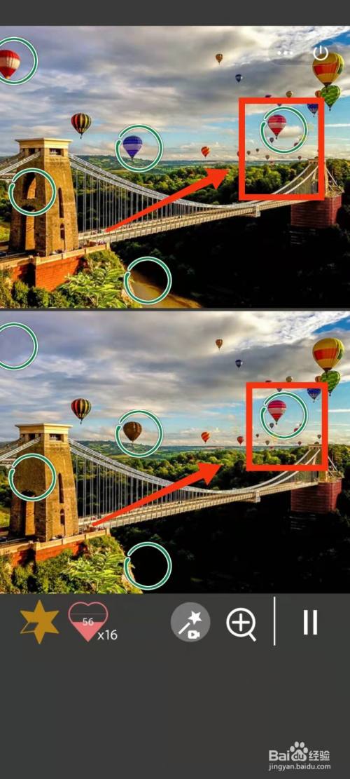 工具/原料小米手机Redmi k30MIUI12.5.3找分歧1500关2方式/步骤1上面的热气球是蓝色,下面的热气球是棕色2上面有大的热气球,下面没有3上面的桥柱子上面有洞,下面没有4上面桥下有河,下面没有5上面红气球后面有白云,下面没有6上面左下角树少,下面的树多END