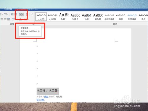 选中需要设置的文字,在起头界面中的顶部东西栏中,找到中文版式功能。
