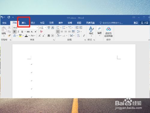 在Word文档界面中,在顶部菜单栏中,点击顶部插入。