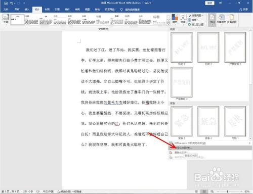 点击上方菜单栏中的设计后,点击水印弹出水印选项栏