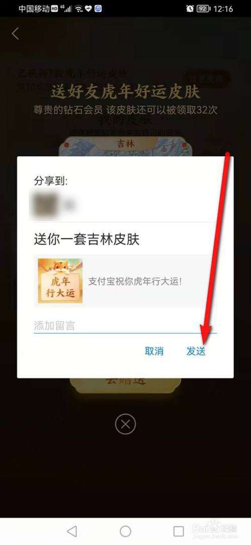 点击“发送”即可将该皮肤赠予给该名老友。