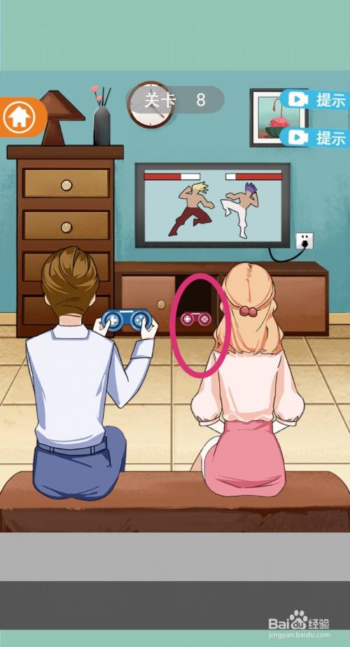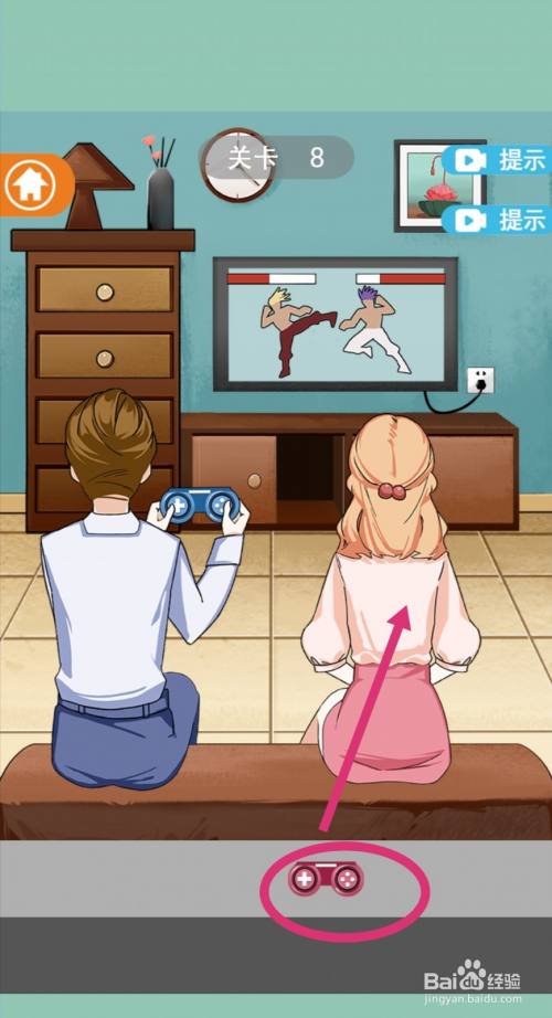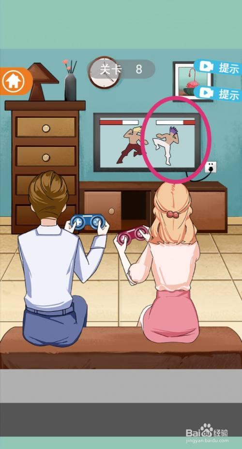 男生把女生打败后,女生就会生气地折断手柄,游戏过关。