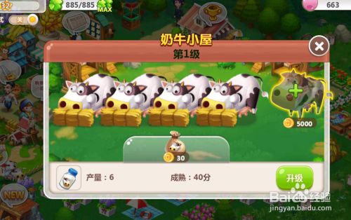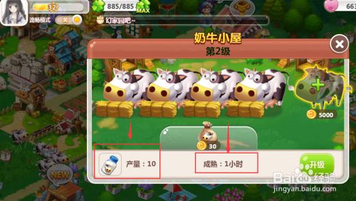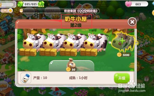 提醒将奶牛小屋进级到第2级,我们点一下前去;