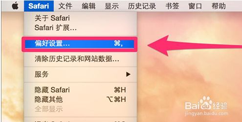 期待插件安装完毕,点击页面顶部的Safari,点击偏好设置。