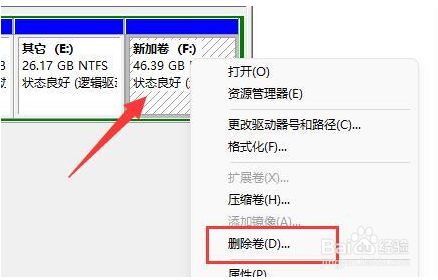 再选中另一个需要归并的分区,点击【扩展卷】。