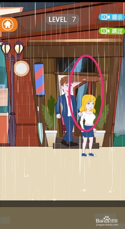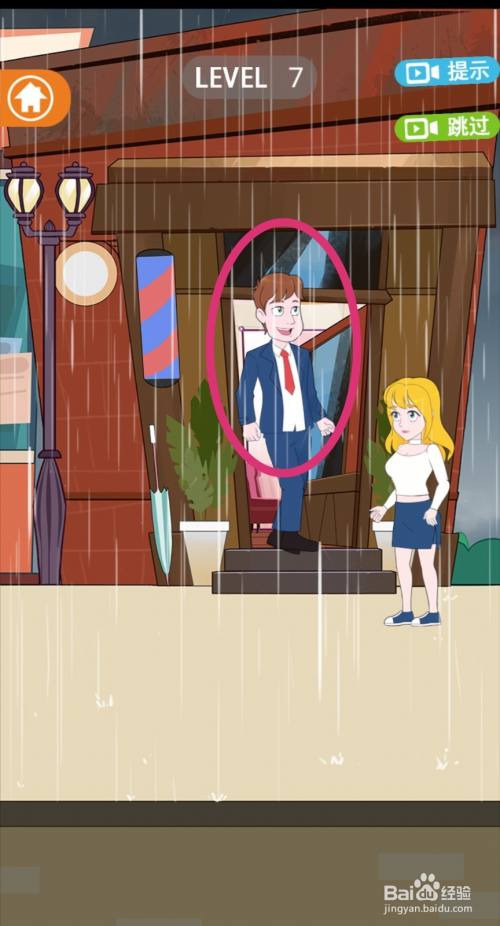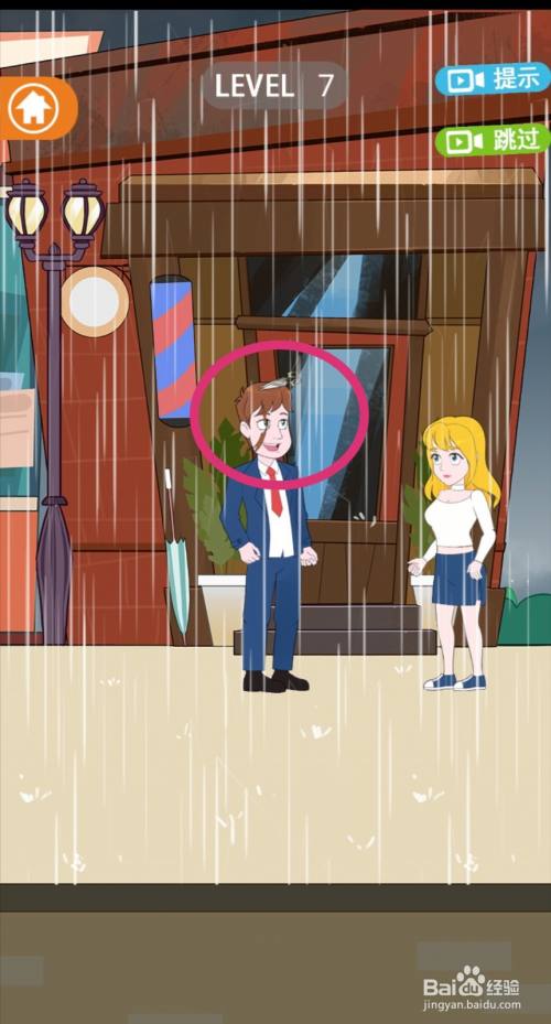 最后,男生头发中心漏雨会把女生淋湿,游戏过关。