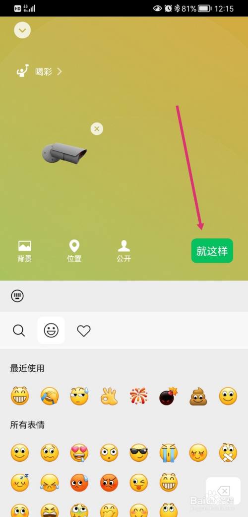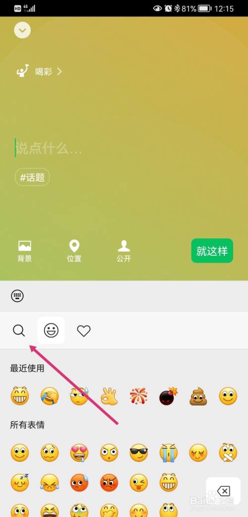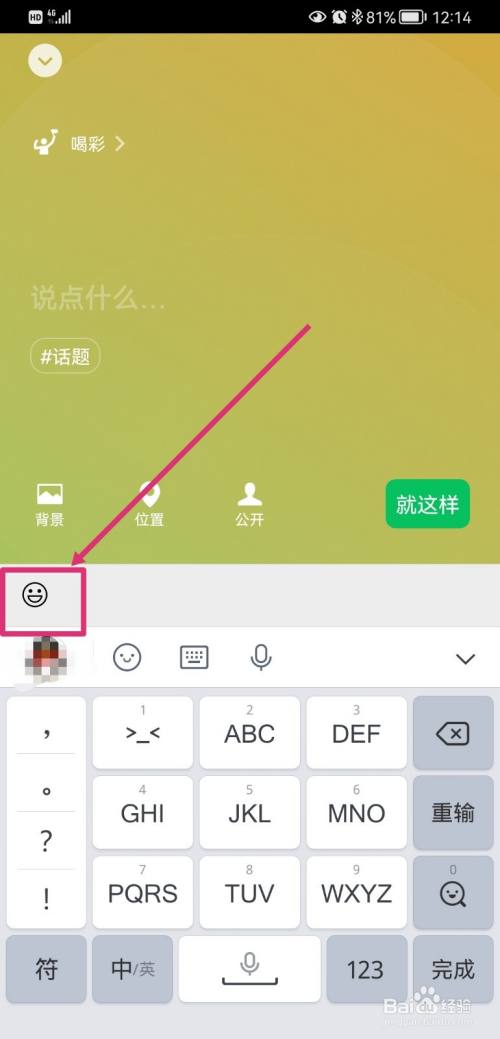 在输入状况是,点击脸色符号;
