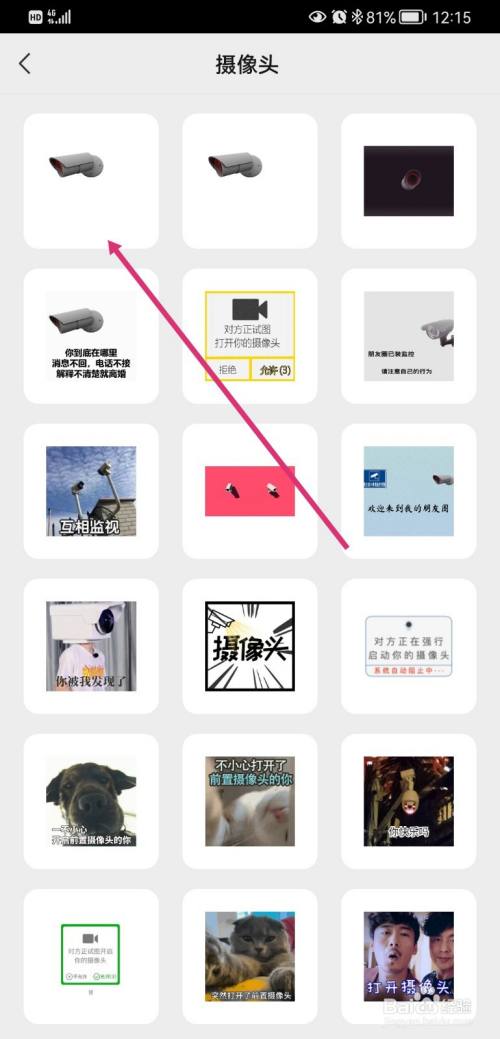 找到动弹的摄像头脸色包,点击选择;